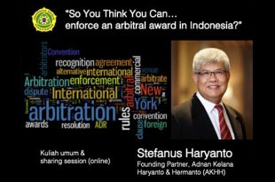 Pada Rabu (6/5/2020), Fakultas Hukum Universitas Katolik Parahyangan (FH Unpar) mengadakan kuliah umum online dan sharing session bertajuk “Arbitral Award in Indonesia”. Kuliah umum dimoderatori oleh John Lumbantobing, S.H., LL.M, MCIArb yang menjabat sebagai Wakil Dekan Bidang Kemahasiswaan dan Alumni FH UNPAR. Pada kesempatan ini dibahas mengenai pelaksanaan hukum arbitrase di Indonesia …